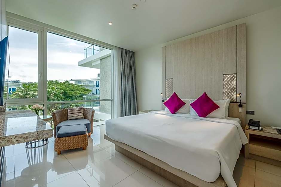 ONE BEDROOM WITH KITCHEN WITH BALCONY is 549 square feet and includes a king-size bed 150-183 width plus living room, balcony, extra beds on demand, cable tv, hairdryer, tea and coffee making facilities , safe, bathrobes, and slippers.