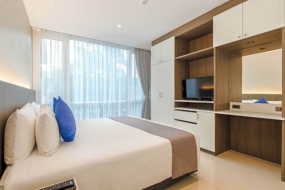 ONE BEDROOM WITH KITCHEN NO BALCONY is 560 square feet and includes a king-size bed 150-183 width plus living room, extra beds on demand, and cable tv and is Wheelchair-accessible.